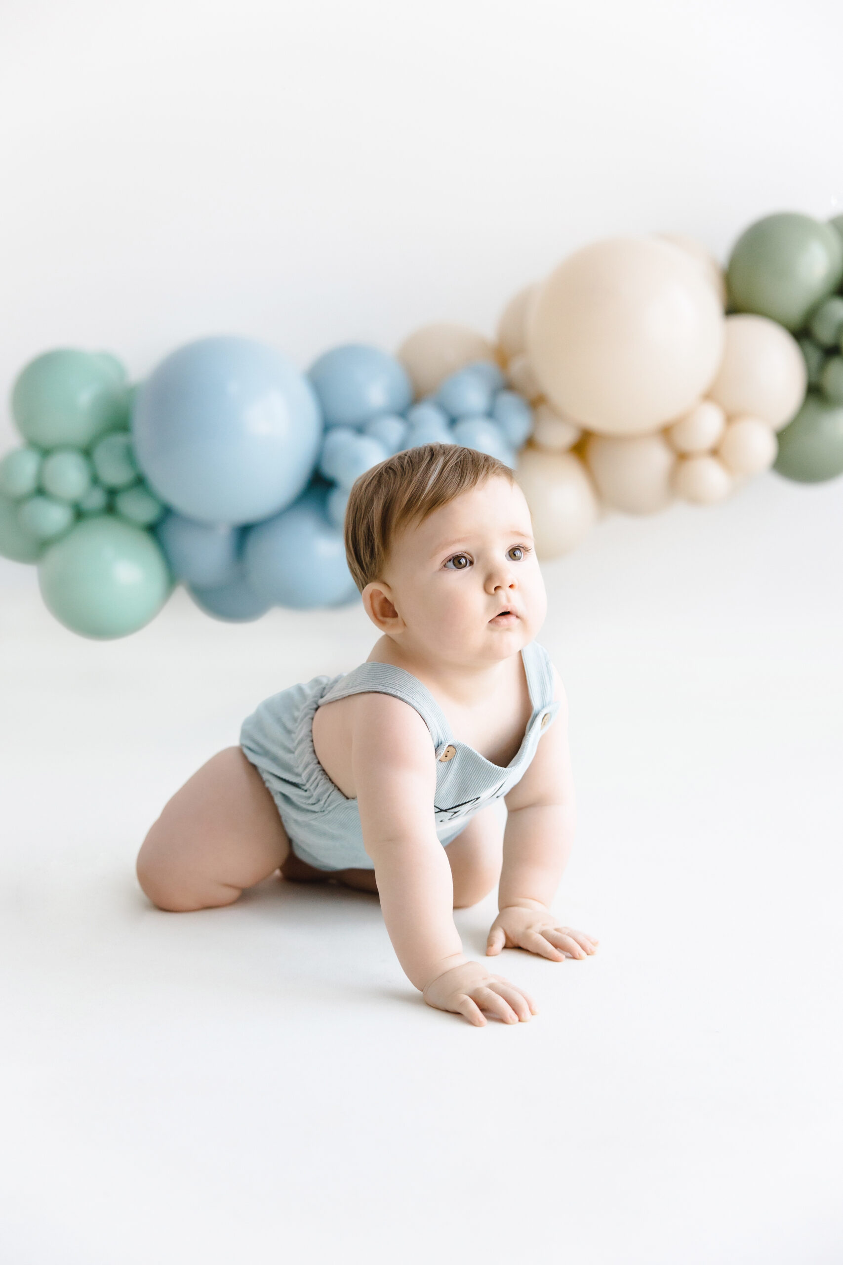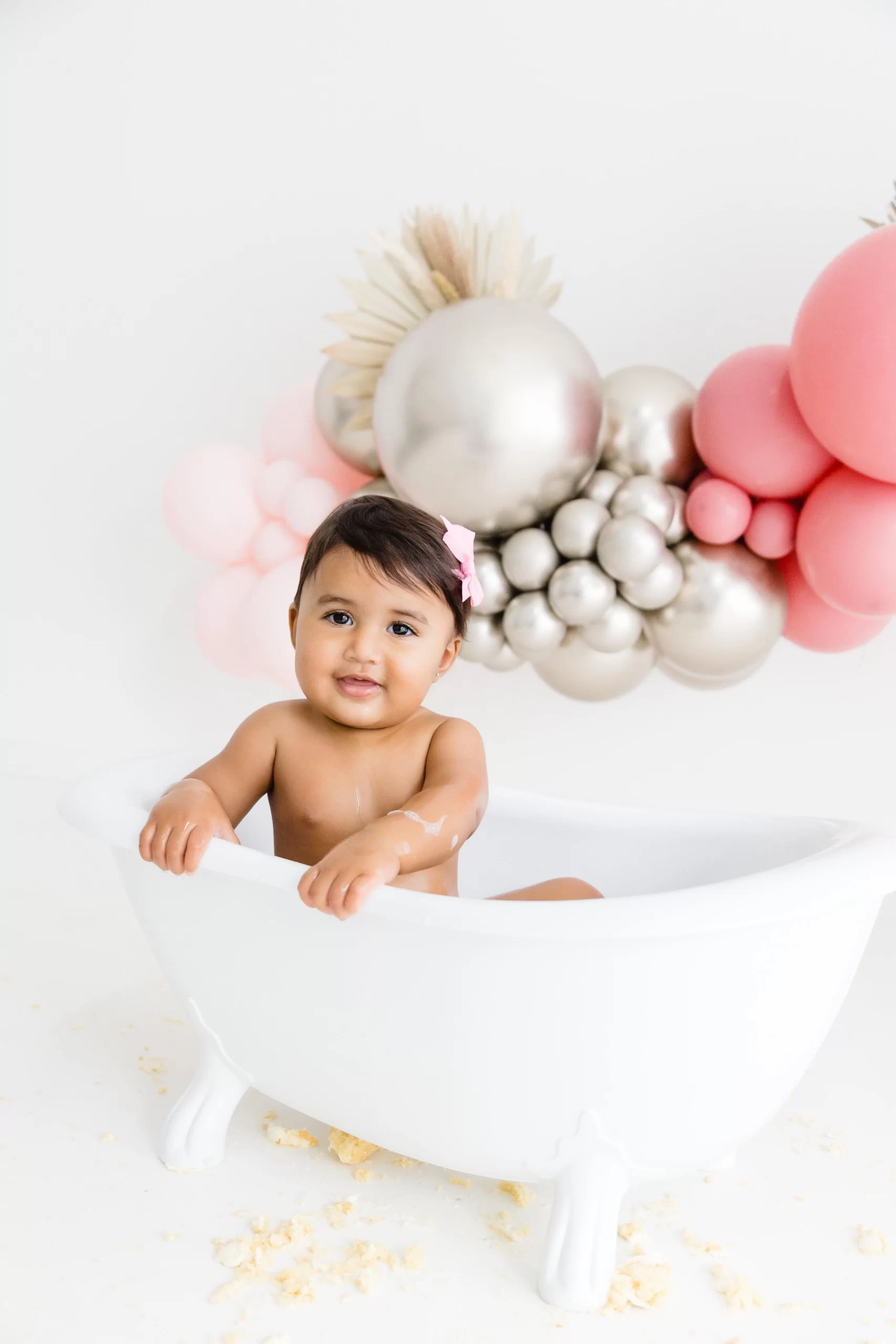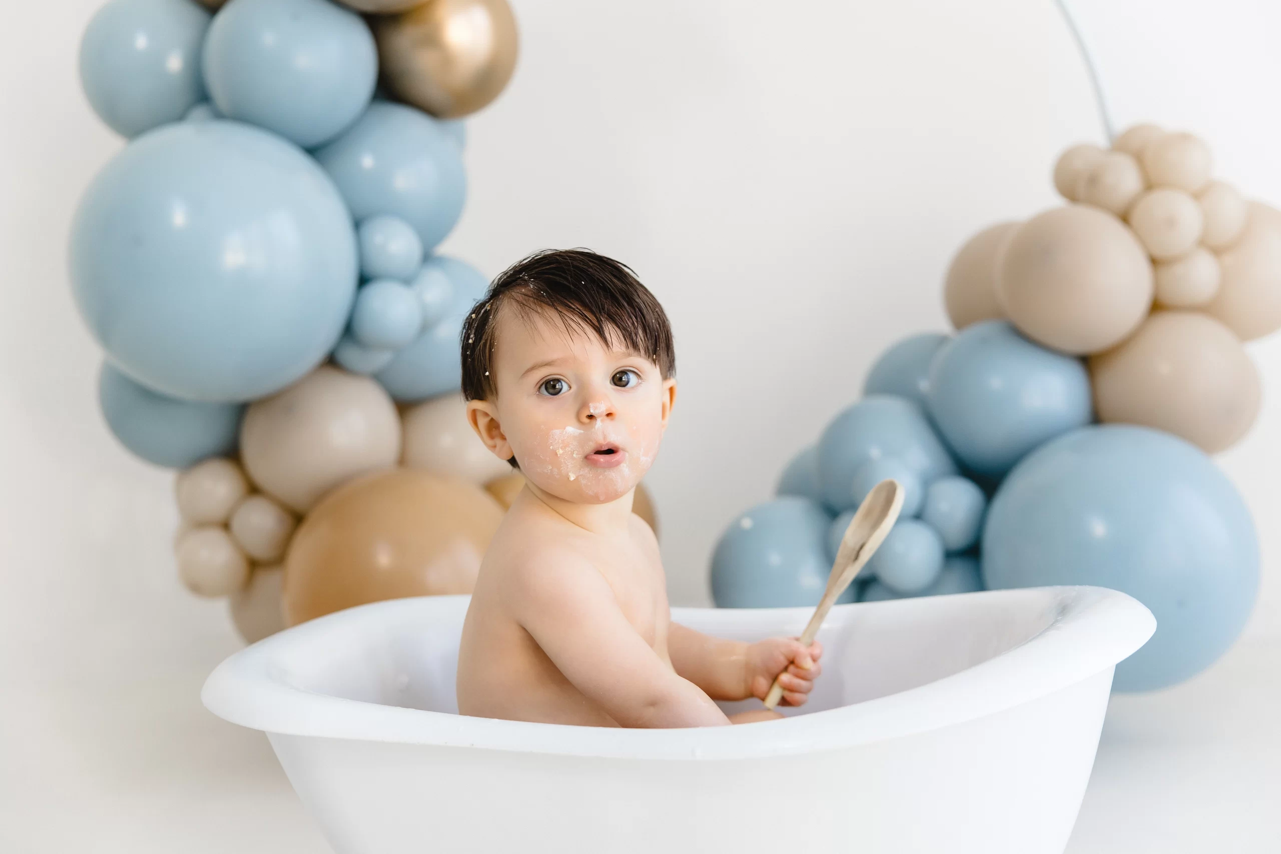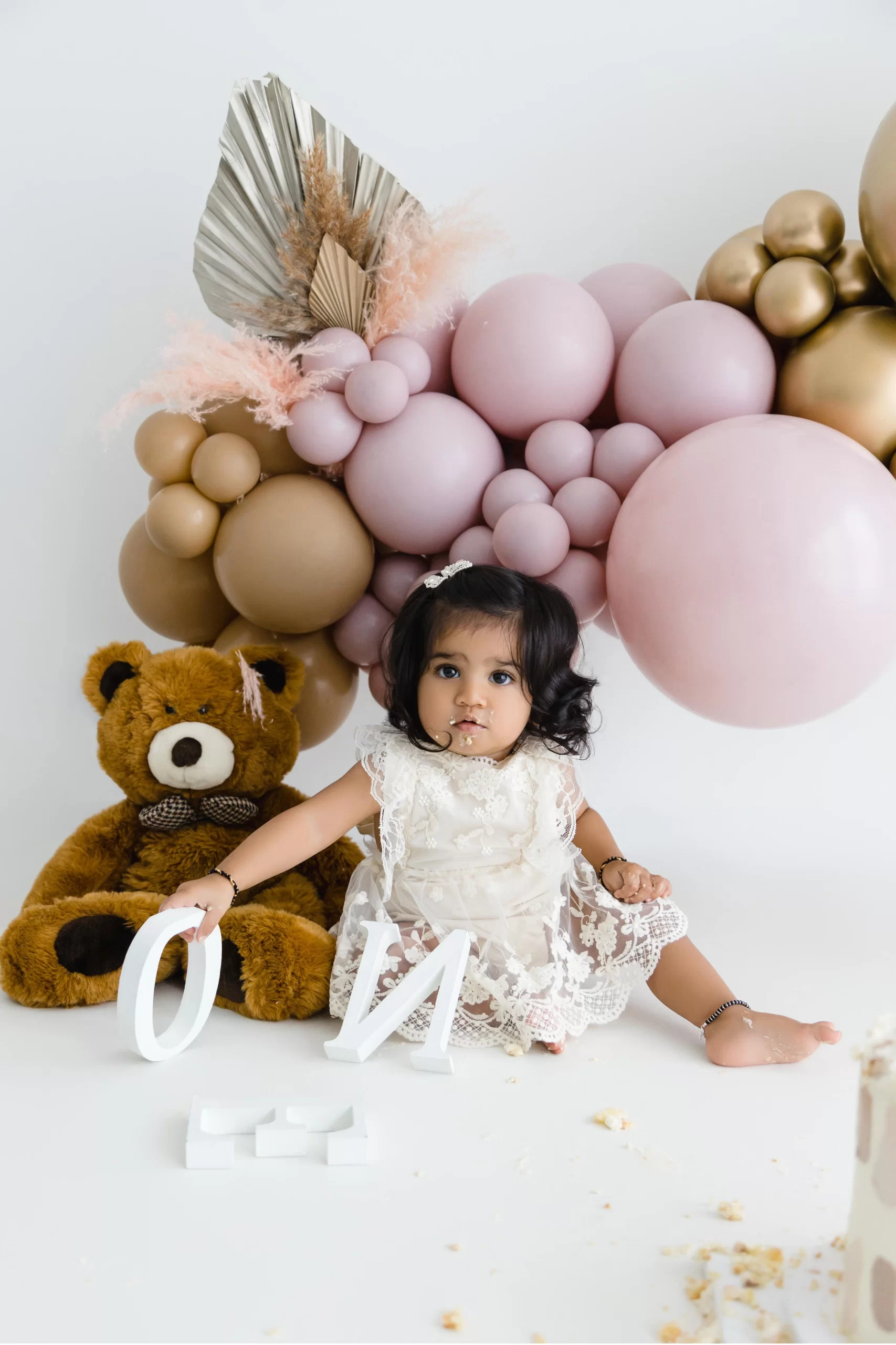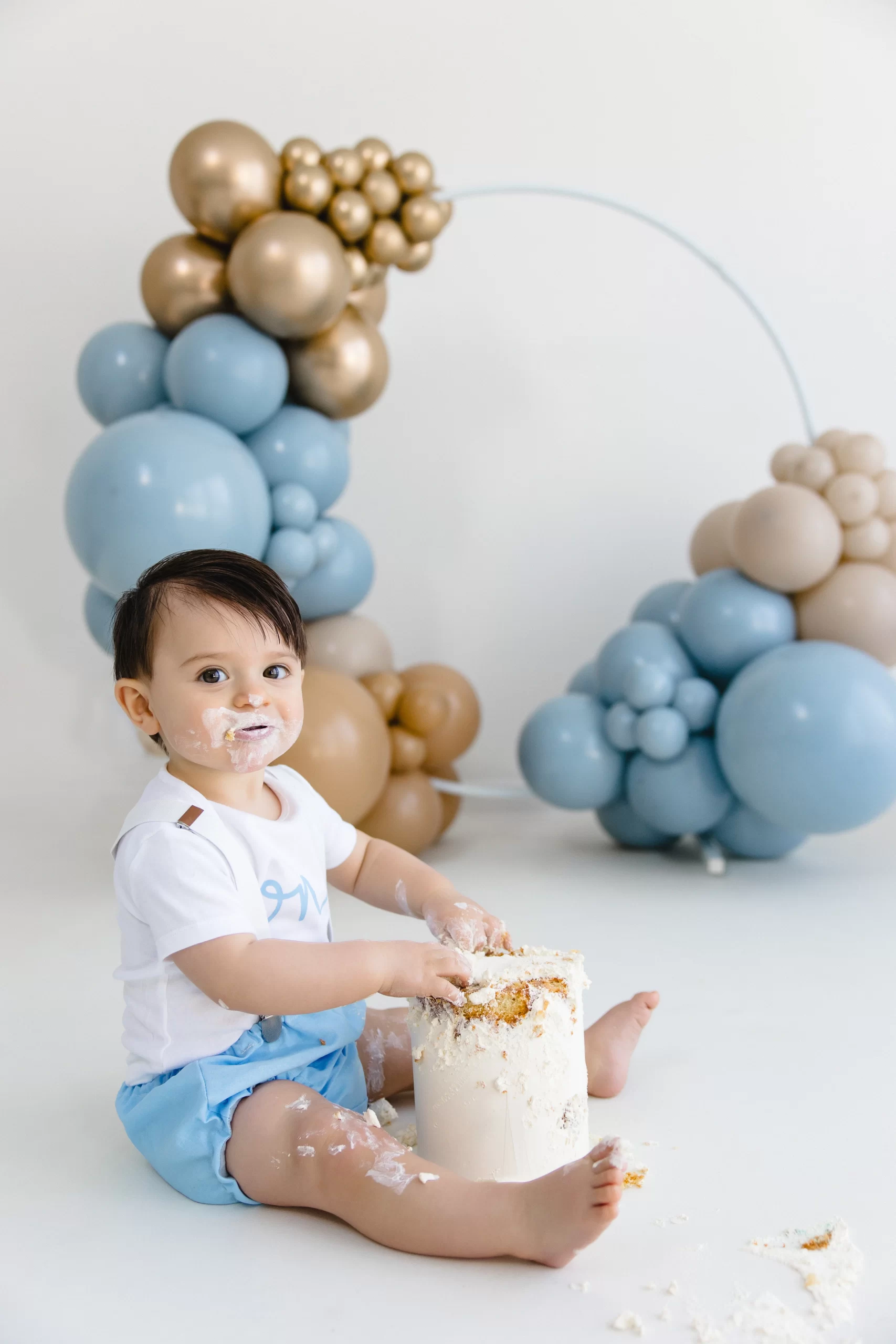 You can keep it simple or add balloons both are equally as beautiful.The key focus of a cake smash session is for your baby to have a fantastic time. We’ll be singing, playing and generally just having lots of fun whilst I capture all of your babies smiles and excitement on camera, leaving you with beautiful photos to treasure.