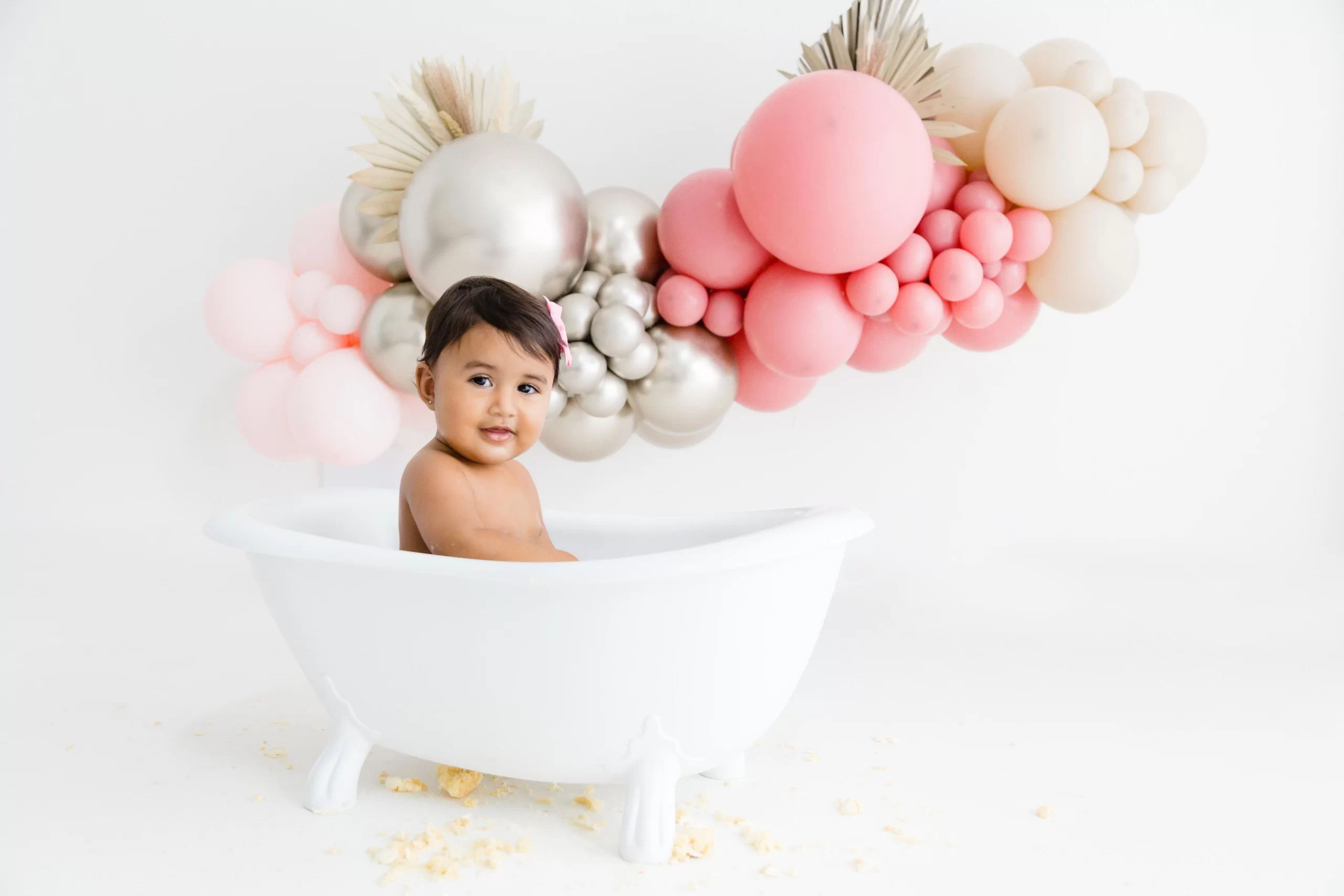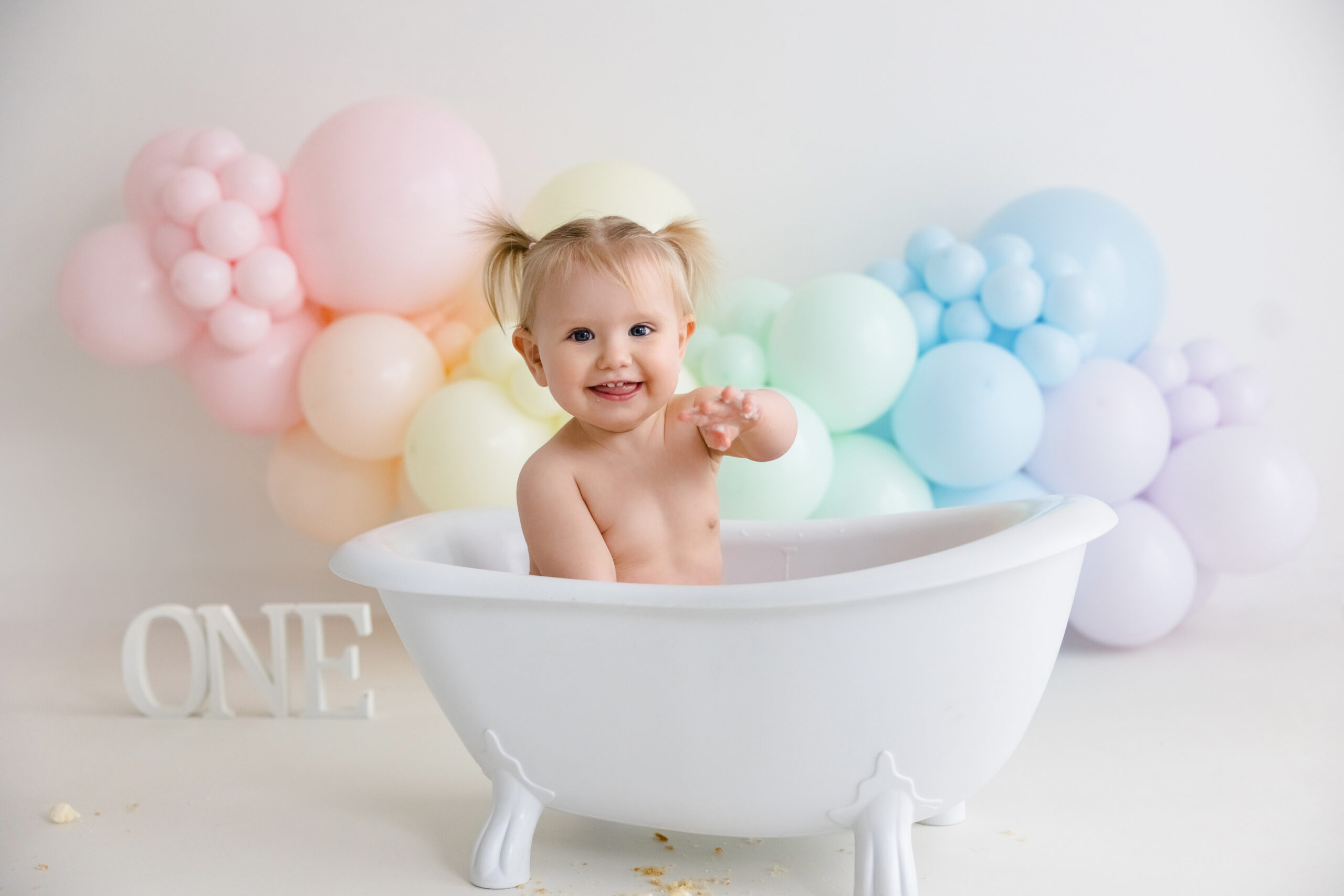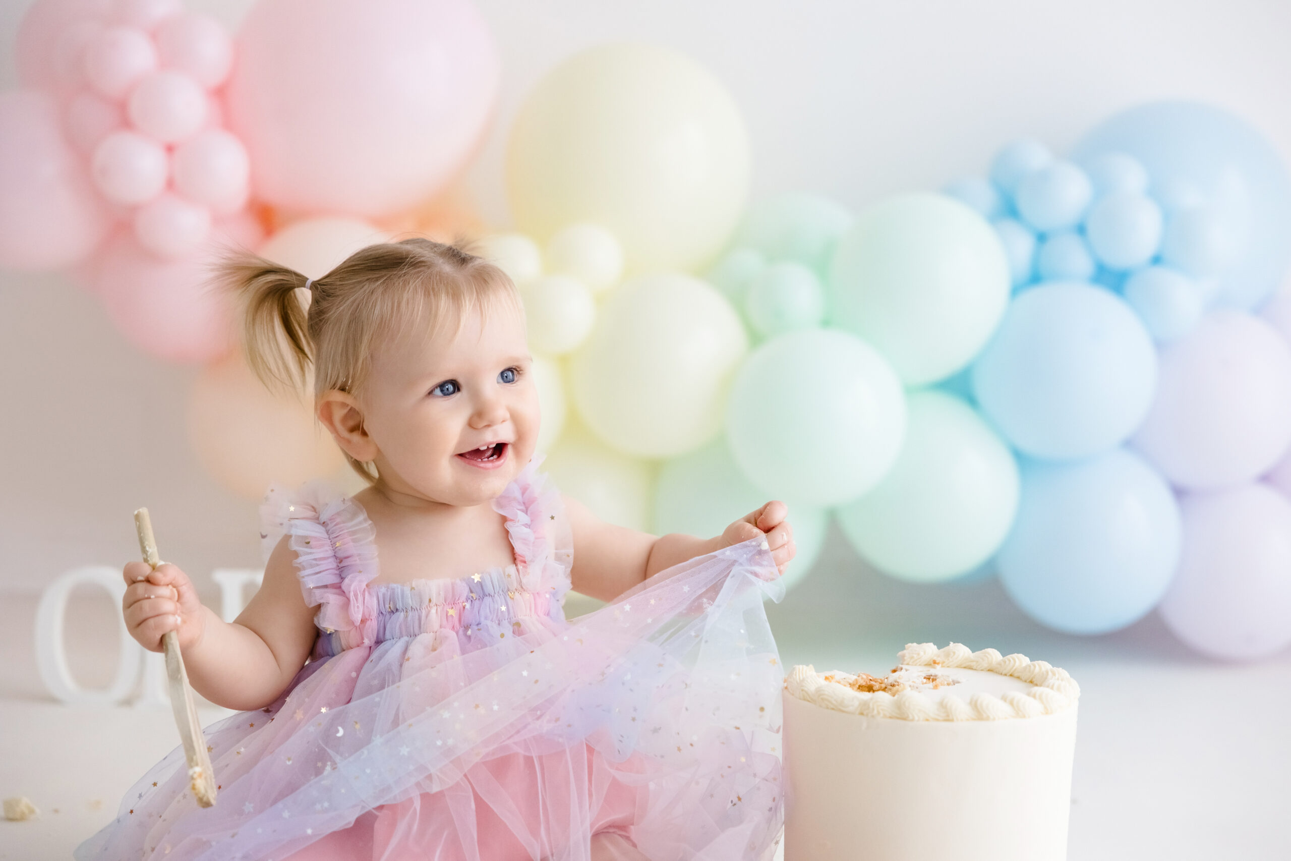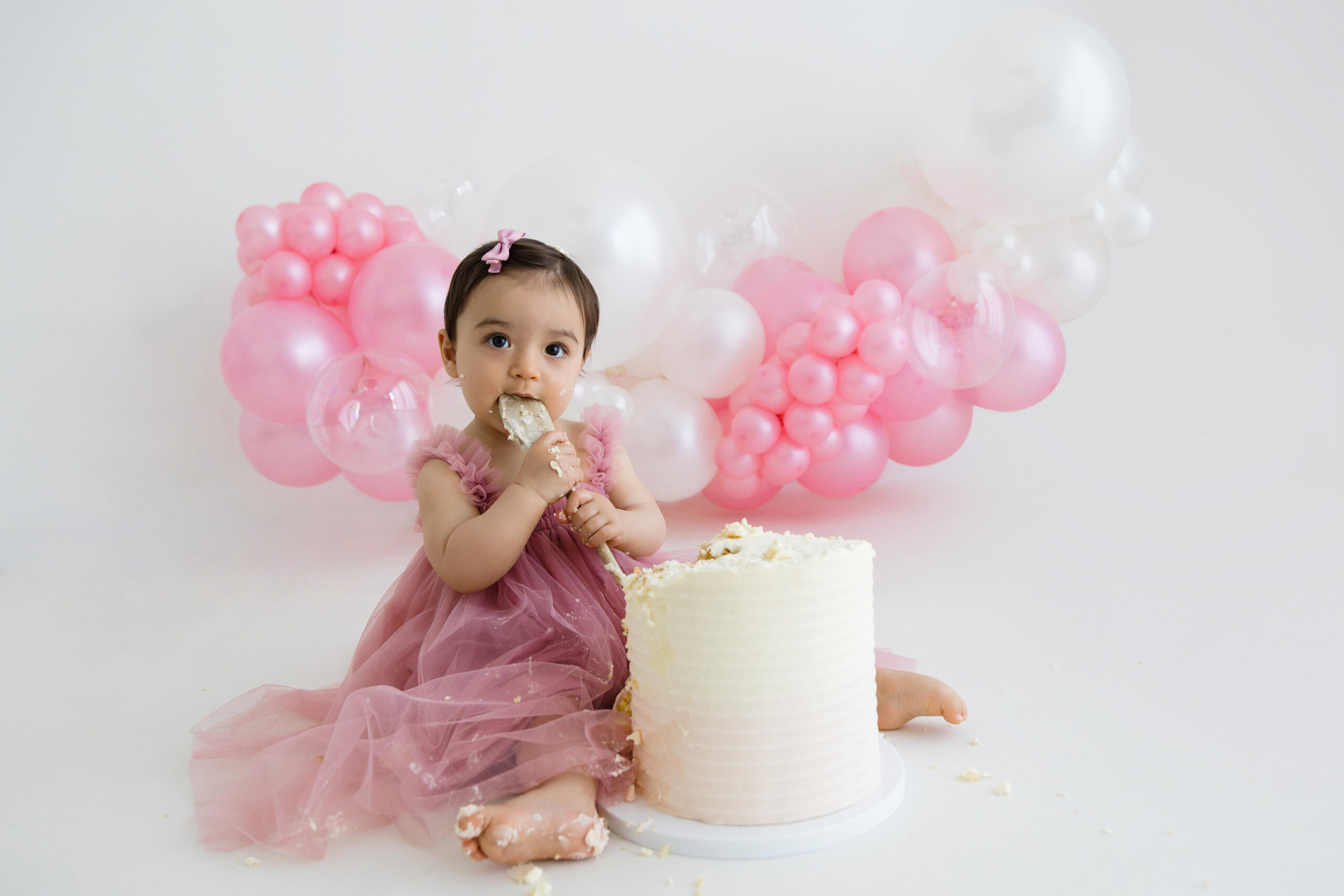 It’s a lot like a baby sensory class but with less paint and a lot more cake (and I can confirm, they really are delicious)! Some little ones get really into the spirit of the cake smash and get stuck in, while others gently prod the icing and delicately nibble. Either way, you’ll love seeing their individual personalities shine through when they’re presented with their yummy birthday cake. You can keep it simple or add balloons – both are equally as beautiful.The key focus of a cake smash session is for your baby to have a fantastic time. We’ll be singing, playing and generally just having lots of fun whilst I capture all of your babies smiles and excitement on camera, leaving you with beautiful photos to treasure.